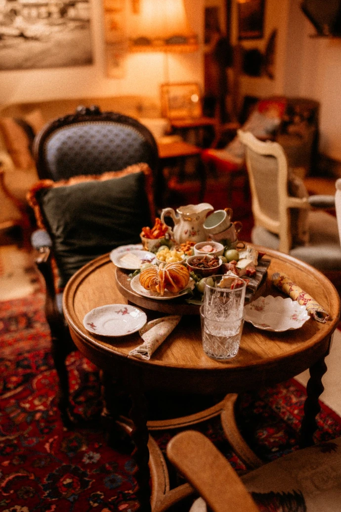 Un petit coin salon aux fauteuils moelleux, une décoration atypique autour de vous, des rires, un peu de musique et une table garnie de plats gourmands et originaux : pas de doutes possibles, vous êtes bien à La Veuve Bila.